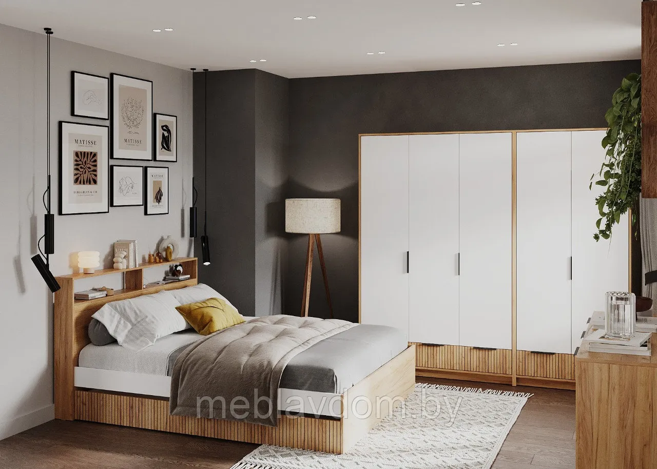 Кровать "Ивис" представляет собой эргономичное и эстетически привлекательное решение для спальной зоны. Она оснащена вместительным двуспальным местом, обеспечивающим высокий уровень комфорта во время сна. Декоративная отделка фасада с использованием фотопечати, имитирующей вертикальную фрезеровку, придает изделию уникальный и современный вид.